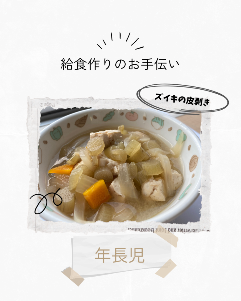 【給食作りのお手伝い ずいきの皮むき】